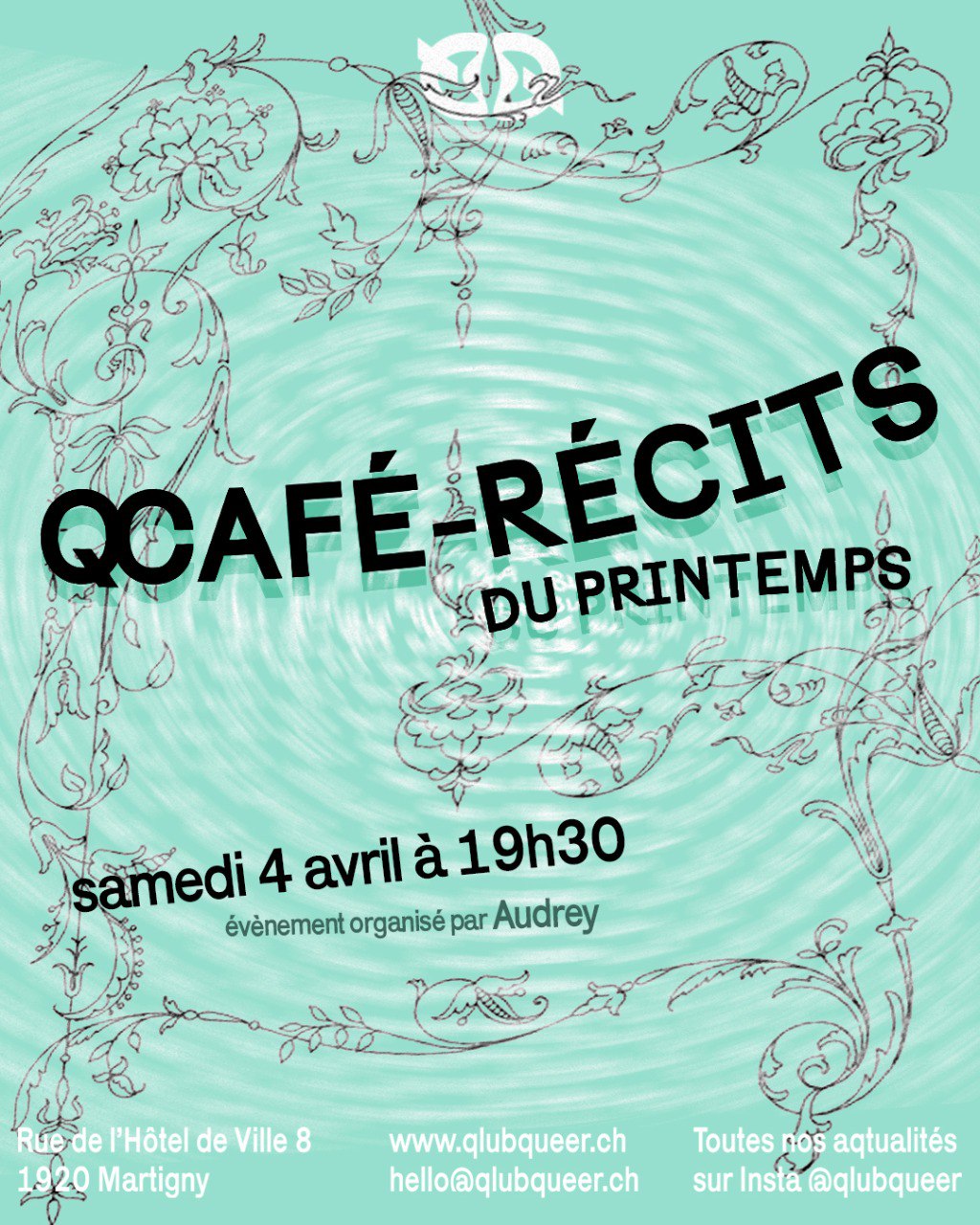 Les premières journées ensoleillées arrivent : c’est le moment parfait pour se retrouver, partager du temps, des histoires et apprendre à mieux se connaître. Rejoins-nous pour un café-récits sur le thème du Printemps et du renouveau. Aucun pré requis, viens simplement t’asseoir à Qlub Queer et laisse toi emporter par le thème de la discussion.